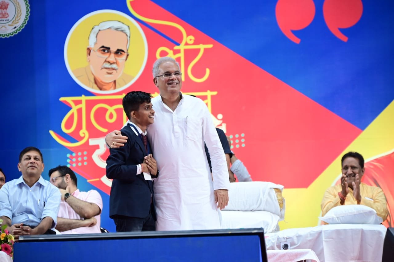 मुख्यमंत्री भूपेश बघेल ने धमतरी के युवा सोमेश्वर गंजीर के जोशीले भाषण को सुनकर अपने पास बुलाकर गले लगाया और आशीर्वाद दिया