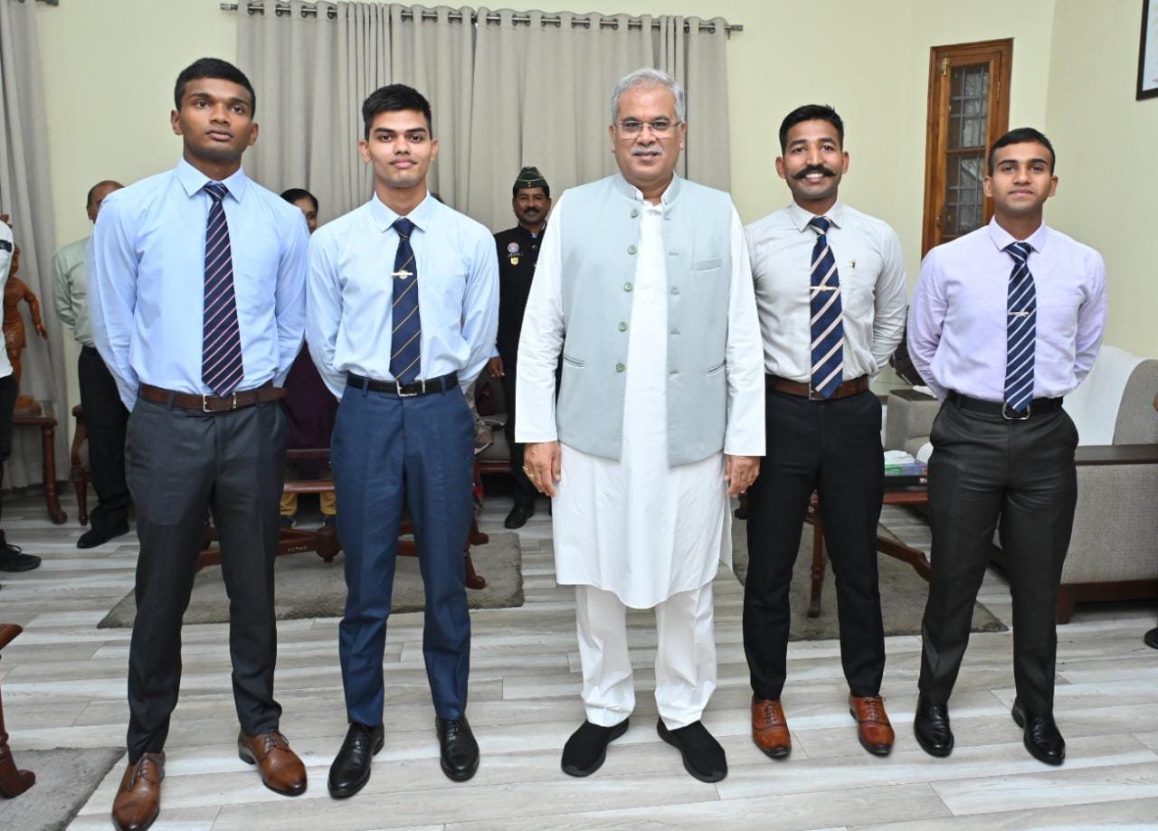 मुख्यमंत्री भूपेश बघेल से आज यहां उनके निवास कार्यालय में छत्तीसगढ़ से भारतीय थल सेना में नवनियुक्त लेफ्टिनेंट अधिकारियों ने सौजन्य मुलाकात की। उल्लेखनीय है कि इस वर्ष छत्तीसगढ़ से बालोद के चिन्मय ठाकुर, कांकेर से धनंजय साहू, सक्ति से सौरभ कपूर, रायपुर से कुशाग्र गर्ग व भिलाई से प्रिंस बत्रा को चार वर्षों का प्रशिक्षण सफलतापूर्वक संपन्न होने पर भारतीय थल सेना में लेफ्टिनेंट पद पर नियुक्त किया गया है। नवनियुक्त अधिकारियों ने मुख्यमंत्री को बताया कि विगत 10 जून को आईएमए देहरादून में पासिंग आउट परेड सम्पन्न हुई। जुलाई माह में वे कार्यभार ग्रहण करेंगे। मुख्यमंत्री ने नवनीयुक्त लेफ्टिनेंट अधिकारियों को बधाई देते हुए उन्हें पदेन दायित्वों के कुशलतापूर्वक निर्वहन हेतु शुभकामनाएं दीं। उन्होंने कहा कि छत्तीसगढ़ से भारतीय थल सेना में आपका चयन राज्य के युवाओं को देश सेवा के लिए आगे आने प्रेरित करेगा। इस अवसर पर पूर्व सैनिक ननकू राम साहू, भूपेंद्र ठाकुर, नवीन गर्ग, राज कपूर सहित नवनियुक्त अधिकारियों के अभिभावकगण उपस्थित रहे।