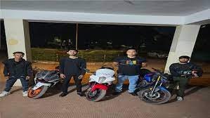 police action on bike Stunt: नवा रायपुर में स्टंटबाजी का एक मामला सामने है। पुलिस ने चार स्टंटबाज को गिरफ्तार किया है। बीते दिनों रविवार को चार युवक नवा रायपुर की रोड पर तेज रफ्तार में बाइक चलाने के साथ ही खतरनाक स्टंट करते नजर आए। पुलिस को इसकी जानकारी मिलने पर चार युवकों को अलग-अलग इलाकों से धरदबोचा है। थाना मंदिर हसौद और राखी थाना पुलिस ने मिलकर कार्रवाई की है।