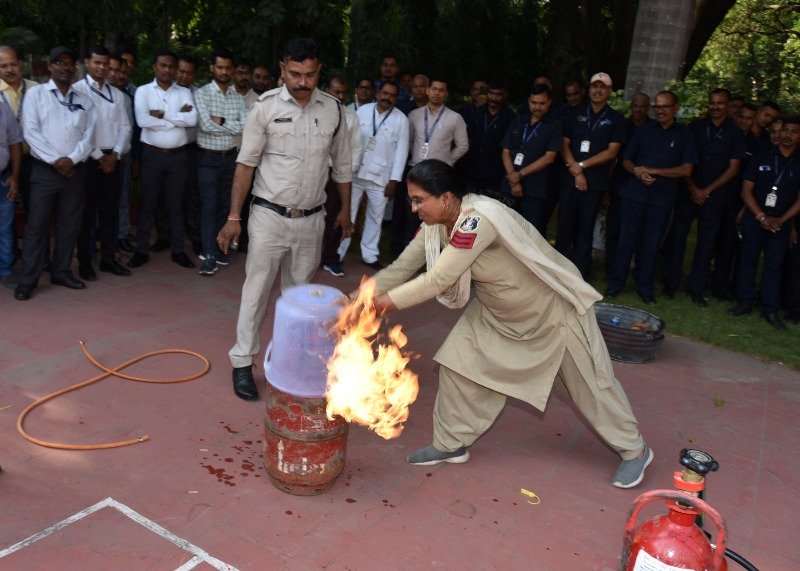 कार्यालय, घरों में आकस्मिक अग्नि दुर्घटना होने पर रोकथाम एवं बचाव के लिए गुरुवार को राजभवन के अधिकारियों-कर्मचारियों को अग्निशमन विभाग की टीम ने प्रशिक्षण दिया।