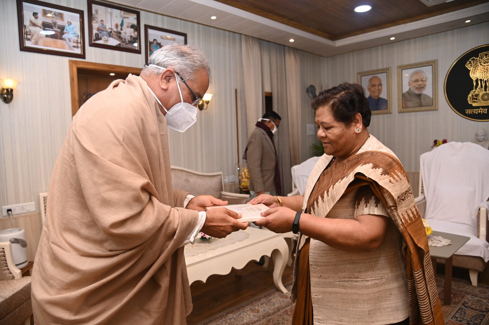 राज्यपाल सुश्री अनुसुईया उइके से आज यहां राजभवन में मुख्यमंत्री श्री भूपेश बघेल ने भेंट कर उन्हें अपने सुपुत्र के विवाह में शामिल होकर आशीर्वाद देने का आग्रह किया। राज्यपाल सुश्री उइके ने मुख्यमंत्री को इस मांगलिक कार्य के लिए शुभकामनाएं दीं।