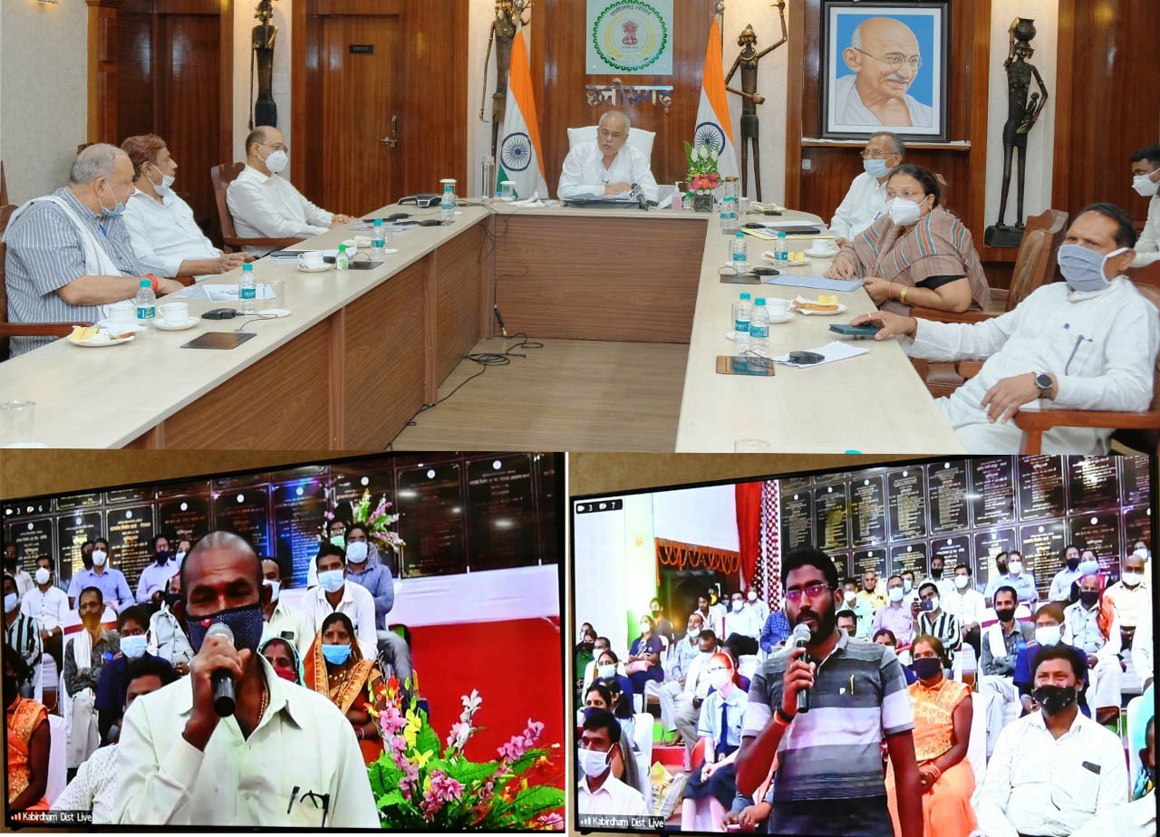 मुख्यमंत्री श्री भूपेश बघेल ने कहा है कि जो लघु वनोपज किसी समय शोषण का जरिया थी, वे राज्य सरकार की योजनाओं से आज वनवासियों की ताकत बन गई हैं। राज्य सरकार ने वनवासियों को वन अधिकार पट्टा देने के साथ वनों के संसाधनों पर गांवों को भी अधिकार दिया है। मुख्यमंत्री वृक्षारोपण प्रोत्साहन योजना का लाभ लेने के लिए किसानों के साथ-साथ ग्रामीण और पंच-सरपंचों में भी इस योजना के माध्यम से अपनी पंचायत की आमदनी बढ़ाने के लिए उत्साह दिख रहा है। मुख्यमंत्री श्री बघेल ने आज यहां अपने निवास कार्यालय में गरियाबंद और कबीरधाम जिले में विकास कार्याें के लोकार्पण और भूमिपूजन के वर्चुअल कार्यक्रम को सम्बोधित करते हुए इस आशय के विचार व्यक्त किए।