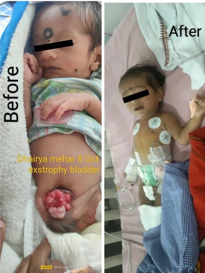 सारंगढ़ के वार्ड क्रमांक 5 के आंगनबाड़ी केंद्र (2) में चिरायु टीम को एक गंभीर जन्मजात बीमारी ब्लैडर एक्सट्रॉफी (ब्लैडर एक्सट्रॉफी एपीसपेडियास कॉम्प्लेक्स) से पीड़ित बालक धैर्य मेहर पिता संजय मेहर मिला। यह एक गंभीर जन्मजात विकृति है जिसमें पेट की निचली दीवार एवं मूत्राशय ठीक से विकसित नहीं हो पाते हैं, जिसमें मां के गर्भ में ही यह जन्मजात दोष बच्चे में हो जाता है, जिसका कोई स्पेसिफिक कारण नही है। अगर समय रहते इसका इलाज न किया जाए तो संबंधित अंग के खुलेपन के कारण इंफेक्शन व अंततः घाव तथा मूत्र की थैली का प्रस्फुटन हो सकता है। साथ ही हाईरिस्क यूरिनरी ट्रैक्ट इंफेक्शन का चांस हो सकता है। अतः इस विकृति के कारण मूत्राशय की दीवार नाभि के क्षेत्र के ठीक नीचे बाहरी ओर देखी जाती है, जिसमें मूत्र त्याग की सामान्य प्रक्रिया देखने को नही मिलती है। इस गम्भीर जन्मजात दोष का प्रभाव 1ः10000 प्रति 50000 लाइव बर्थ में हो सकता है, जिसमें 3:1 का प्रभाव बालक-बालिका के लिए होता है।