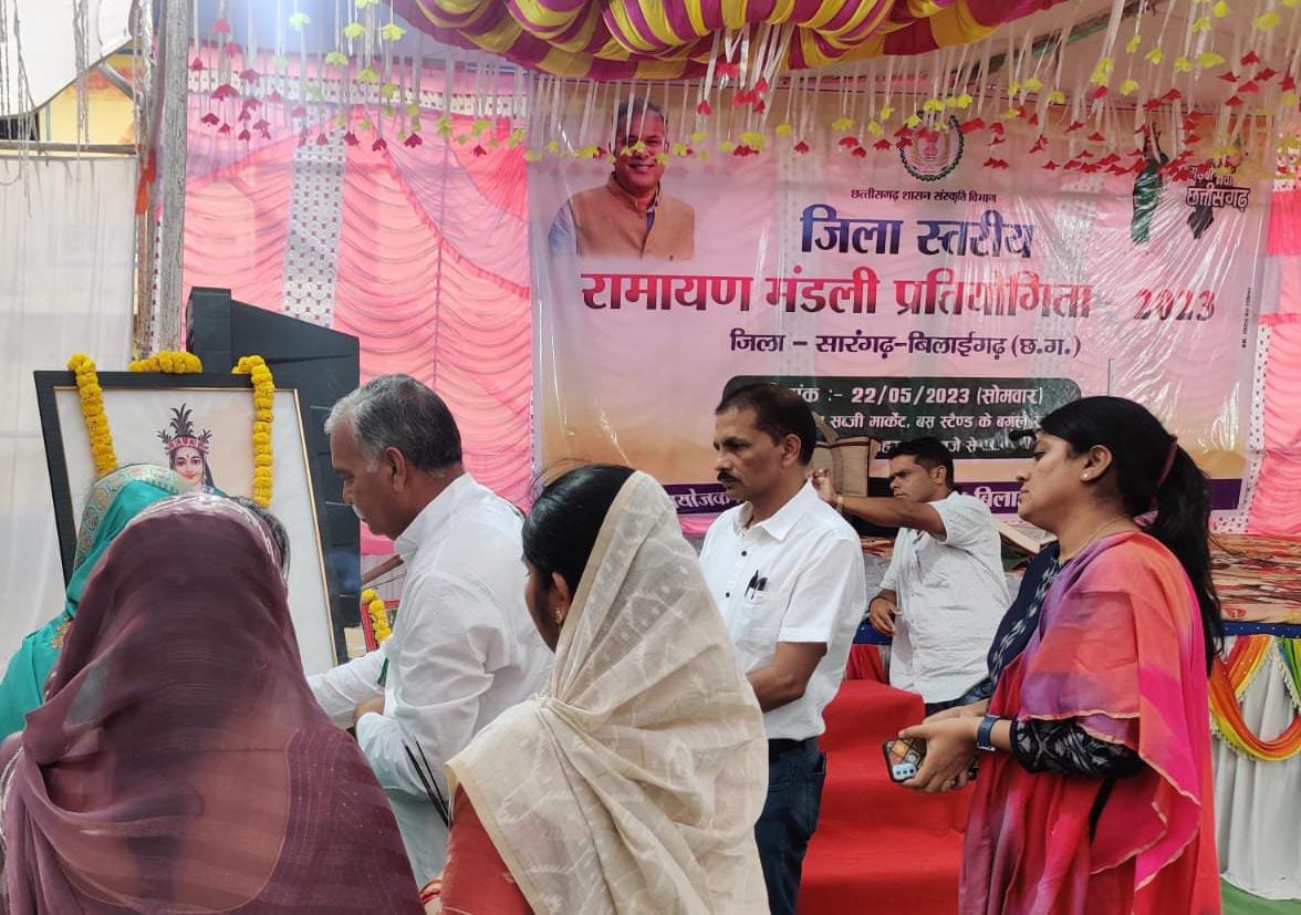 जिला प्रशासन द्वारा जिला स्तरीय रामायण मंडली प्रतियोगिता सारंगढ़ बस स्टैंड के पास सोमवार को आयोजित किया गया। राज्य सरकार के संस्कृति विभाग के चिन्हारी पोर्टल में पंजीकृत सारंगढ़, सरिया, बरमकेला, बार, धारासिव, रेड़ा, बासीनबहरा, बरगाव आदि के मानस मंडली ने भाग लिया। छत्तीसगढ़ राज्य गौ सेवा आयोग के सदस्य पुरूषोत्तम साहू ने दीप प्रज्ज्वलित कर कार्यक्रम का शुभारंभ किया। कार्यक्रम के दौरान विधायक और अनुसूचित जाति विकास प्राधिकरण के उपाध्यक्ष उत्तरी जांगड़े सहित अतिथियों ने पंडाल में जिले के स्व सहायता समूह द्वारा लगाए गए स्टॉल का निरीक्षण किया। कार्यक्रम को संबोधित करते हुए विधायक ने कहा कि भगवान रामजी छत्तीसगढ़ के भांजा है। इसलिए छत्तीसगढ़ राज्य में भांजा भांजियो को प्रणाम करने की परंपरा है। प्रभु राम हम सब के दिल में बसते हैं। कार्यक्रम में आए अतिथियों ने संक्षिप्त उद्बोधन दिया। नोडल अधिकारी हरिशंकर चौहान ने अपने संबोधन में गाकर कहा “जरा देर ठहरो राम, तमन्ना यही है, अभी हमने जी भरके देखा नहीं है”। निर्णायक मंडल में व्ही ठाकुर, श्यामलाल चौहान, संतराम धृतलहरे और मानिक लाल मेहर शामिल थे।