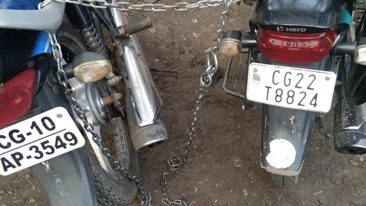 CG : नो-पार्किंग में खड़ी बाइक में चेन लगाकर स्टैंड कर्मी कर रहे वसूली