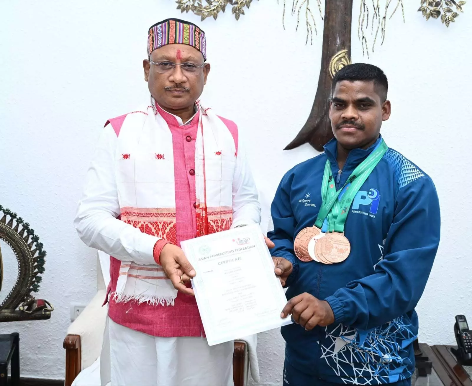 CG : CM साय से पदक विजेता खिलाड़ी जे. भागवत ने की सौजन्य भेंट