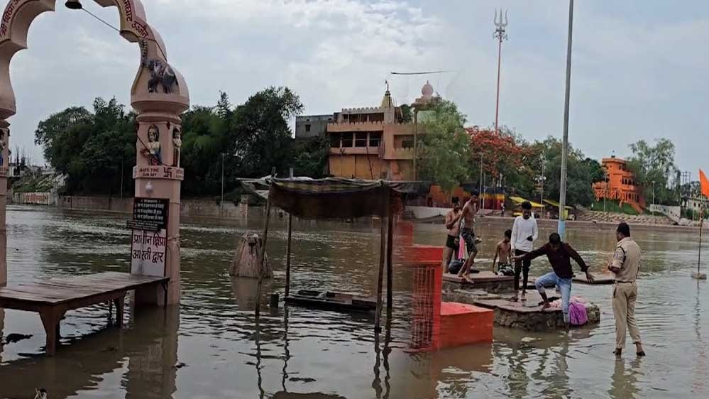 उज्जैन में शिप्रा नदी का जलस्तर बढ़ने के बाद घाटों पर पूजा अर्चना पर रोक, सुरक्षाकर्मियों की चेतावनी