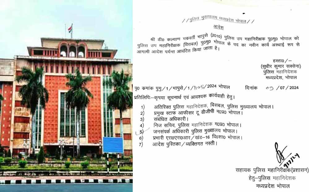 डी.कल्याण चक्रवर्ती, पुलिस उप महानिरीक्षक, भोपाल को एएसएफ में डीआईजी पद पर तैनात किया गया है। मोनिका शुक्ला को डीआईजी रेल बनाया गया है। इससे पहले वह एसएएफ में डीआईजी पद की जिम्मेदारी संभाल रहीं थी।
