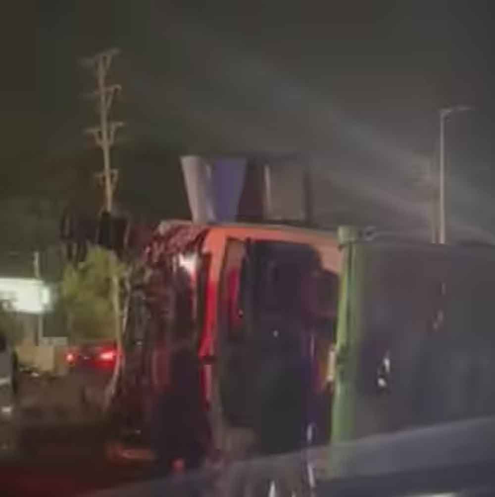 कार को बचाने के चक्कर में पलटी श्रद्धालुओं की बस