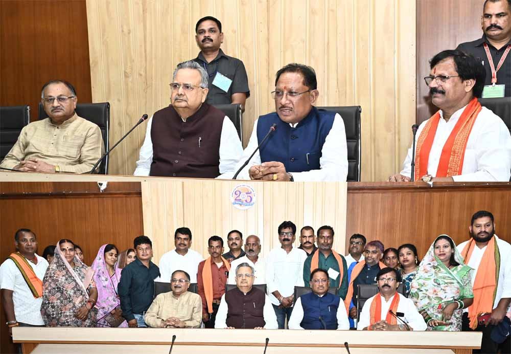 मुख्यमंत्री श्री साय ने प्रतिनिधिमंडल को आश्वस्त किया कि प्रदेश सरकार संतुलित, समावेशी और सतत विकास के सिद्धांतों पर कार्य करते हुए छत्तीसगढ़ को सतत विकास की  ओर अग्रसर करने के लिए कटिबद्ध है। इस अवसर पर पूर्व सांसद श्री प्रदीप गांधी, श्री कोमल राजपूत, त्रिस्तरीय पंचायत पदाधिकारीगण और राजनांदगांव जिले के गणमान्य नागरिकगण उपस्थित थे।