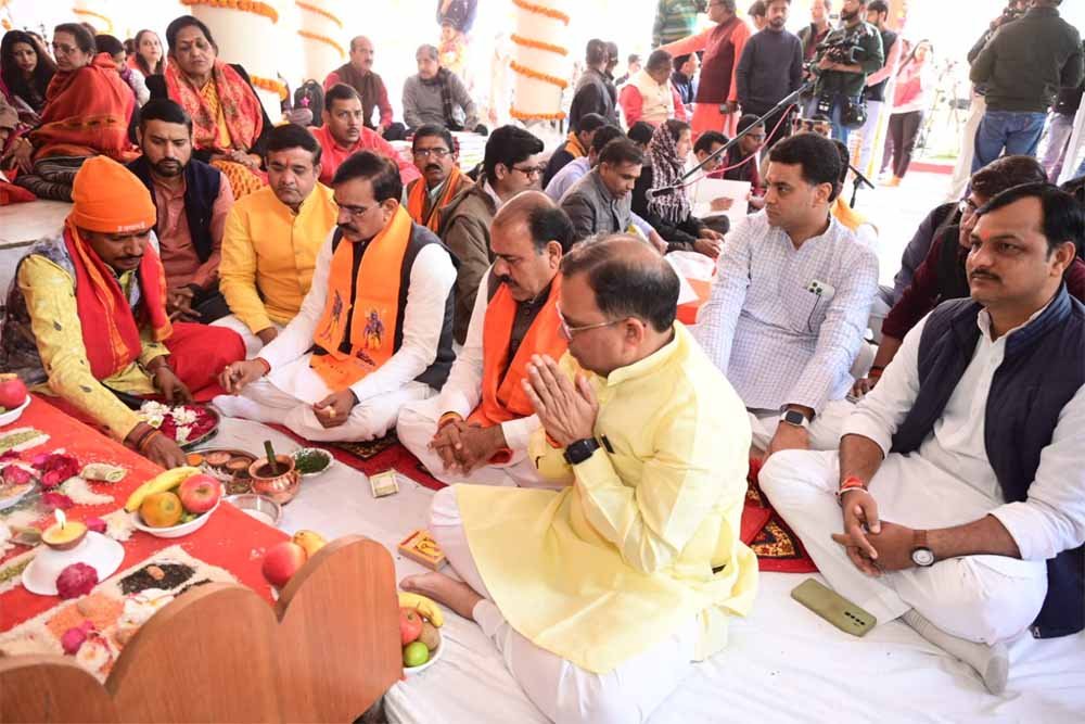 अयोध्या में भव्य मंदिर में प्रभु श्रीराम की प्राण-प्रतिष्ठा के उपलक्ष्य में रविवार प्रातः 11 बजे प्रदेश भाजपा कर्यालय स्थित शिव मंदिर में विधि-विधान से पूजन कर अखंड रामायण पाठ प्रारंभ हुआ। प्रदेश भर से आए 108 दिव्यांगजनों द्वारा ब्रेल लिपि में अखंड रामायण पाठ किया जा रहा है। पार्टी के प्रदेश अध्यक्ष व सांसद विष्णुदत्त शर्मा ने विधि-विधान से पूजन कर रामायण का पाठ कर दिव्यांगजनों का सम्मान किया।