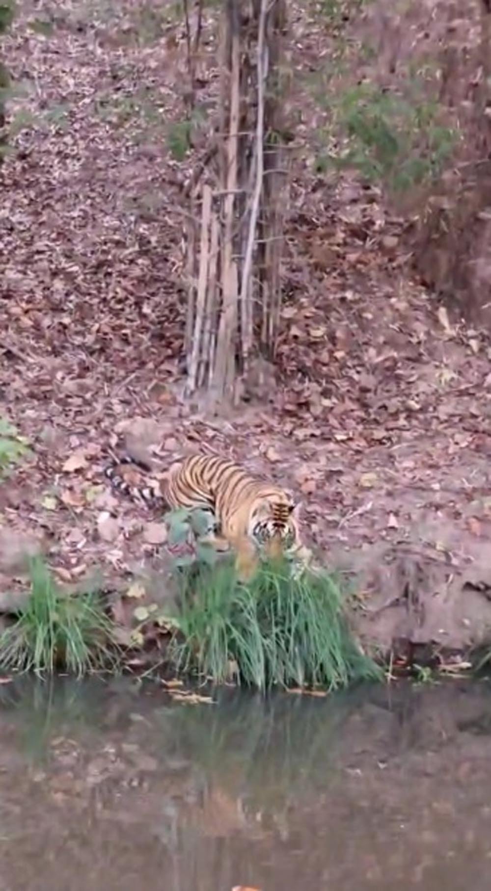 वीडियो में साफ दिखाई दे रहा है कि एक बाघ नाले के ऊपर किनारे पर बैठा हुआ है और वहां की लंबी घासो को खा रहा है। बाघ का इत्मीनान के साथ घास को खाता हुआ दिखाई पड़ना लोगों के लिए आश्चर्यजनक हो सकता है, लेकिन दरअसल यह बिल्कुल भी आश्चर्यजनक नहीं है। दरअसल लोगों को इस बात की जानकारी नहीं है कि बाघ भी घास खाता है। असल में लोग बाघ को सिर्फ हिंसक प्राणी ही समझते हैं और यह मानते हैं कि वह सिर्फ मांस से ही खाता है। जबकि ऐसा नहीं है, आवश्यकता पड़ने पर बाघ भी घास खाता है और सिर्फ बाघ ही नहीं धरती पर उत्पन्न होने वाले सभी जानवर आवश्यकता पड़ने पर घास जरूर कहते हैं।