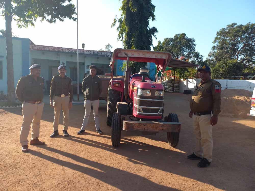 स्वंय ट्रेक्टर मालिका एवं चालक होना बताया । मौके पर उपस्थित साक्षीयो के समक्ष बिना नं. के एक लाल रंग के महिन्द्रा 275 डीआई कम्पनी का ट्रेक्टर जिसका इजंन नं. NJF5HAE0721 एवं चेचिस नं. MBNSFAEAAJNF03689 को मय नीले रंग की ट्राली में लोड अवैध रेत 03 घन मीटर कीमती 5000/- रूपये ट्रेक्टर ट्राली किमती 500000/- रूपये कुल मशरूका 505000 रूपया का मौके पर मुताबिक जप्ती पत्रक के जप्त किया गया । चालक एवं वाहन स्वामी ऊदल प्रजापती के विरुध्द धारा 303(2),317(5) बीएनएस एवं 4/21 खान एवं खनिज विकास अधिनियम 1957 का अपराध पंजीबध्द कर विवेचना में लिया गया है । श्रीमान पुलिस अधीक्षक महोदय श्री मोती उर रहमान अति पुलिस अधीक्षक महोदय श्री इसरार मंसूरी ,श्रीमान एसडीओ(पी.) महोदय श्री सुमित केरकट्टा एवं थाना प्रभारी एसपी शुक्ला महोदय के दिशा निर्देश पर अवैध रेत चोरी पर कार्यवाही की गई है उपरोक्त कार्यवाही में अमरलाल यादव चौकी प्रभारी वेंकटनगर प्र0आर 81 सुखदेवराम भगत आर.288 विजय टाटू का विशेष योगदान रहा है ।