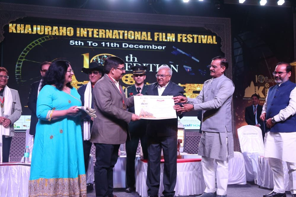 खजुराहो मे चल रहे 10 अंतरराष्ट्रिय फिल्म फेस्टिवल का शुभारंभ मध्य प्रदेश के राज्यपाल मांगुभाईपटेल ने खजुराहो क्षेत्र के सांसद विष्णुदत्त शर्मा, क्षेत्रीय विधायक अरविंद पटेरिया की उपस्थिति मे किया! इस शुभ अवसर के  दौरान भारतीय पुरातत्व सर्वेक्षण विभाग के पुरातत्वविद डॉ शिवकांत बाजपेयी दीपक , अभिनेता दीपक परासर, मुकेश खन्ना, गायिका संजीवनी को सम्मानित किया गया! महापुरुषो के सोर्य को फिल्म मे दिखाने की बात कही. हजारों वर्ष पुराना खजुराहो के इतिहास से अपने संबोधन का प्रारम्भ किया! पुरातत्वविद डॉ शिवकांत बाजपेयी जो खासकर खजुराहो , पन्ना सहित अन्य जगह से मिलने वाले इतिहासिक तत्वों की पड़ताल मे अपने कार्यो को निरंतरता प्रदान कर रहे! पन्ना जिला सहित आस पास के अन्य जिलों मे लगातार विश्वधरोहर को सुरक्षित करने के प्रयास के साथ हजारों वर्ष से छिपे तथ्यो को उजागर करने मे लगे हुए है! जल्द ही कोई नया अध्याय मध्य प्रदेश ही नही अपितु विश्व के सामने रख सकते है.