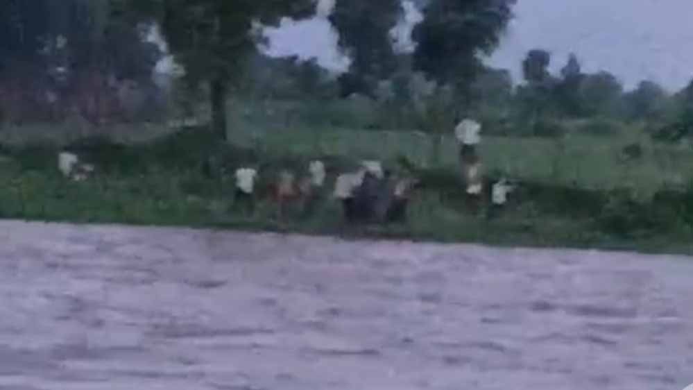 नदी के बीचों बीच फसे 59 लोगों को दल ने बचाया