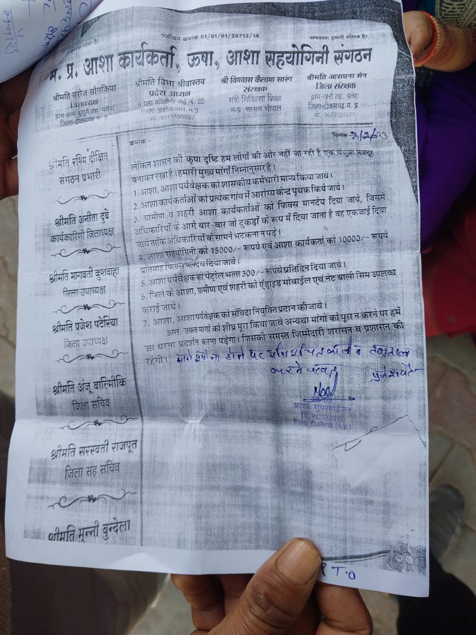 आशा उषा सहयोगिनी संगठन के बैनर तले आज जतारा के सामुदायिक स्वास्थ्य केंद्र में आशा और उषा कार्यकर्ताओं ने अपनी 8 सूत्री मांगों को लेकर प्रदर्शन किया है जानकारी देते हुए आशा उषा सहयोगी संगठन ब्लॉक अध्यक्ष नीता रावत ने बताया है कि आज सामुदायिक स्वास्थ्य केंद्र जतारा पहुंचकर आशा कार्यकर्ताओं के द्वारा अपनी 8 सूत्री मांगों को लेकर विरोध प्रदर्शन किया जिनमें प्रमुख मांग की आशा कार्यकर्ताओं को ₹10000 और आशा सहयोगिनी को ₹18000 माने नहीं दिया जाए,संविदा पर नियुक्ति की जाए एवं पेट्रोल और मोबाइल भत्ता भी दिया जाए जैसी कई मांगे उसमें सम्मिलित की है उन्होंने कहा है अगर उनकी मांगें पूरी नहीं होती है तो बाहर अनिश्चितकालीन कलम बंद और काम बंद हड़ताल पर बैठेंगे इस प्रदर्शन में प्रमुख रूप से नीता रावत ब्लॉक अध्यक्ष, एवं जिला उपाध्यक्ष प्रजेश पटेरिया साउथ संगठन की कई पदाधिकारी एवं आशा कार्यकर्ता व आशा सहयोगी कार्यकर्ता प्रमुख रूप से शामिल रही हैं।