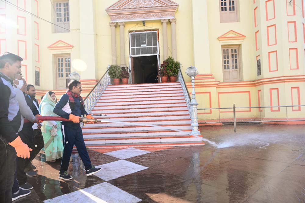 प्रधानमंत्री नरेन्द्र मोदी के आव्हान पर भारतीय जनता पार्टी के प्रदेश अध्यक्ष व सांसद विष्णुदत्त शर्मा ने मंदिर स्वच्छता अभियान के तहत रविवार को पन्ना के बलदेव मंदिर में झाडू लगाकर पानी से पूरे मंदिर परिसर में सफाई की। इस दौरान पूर्व मंत्री व विधायक वृजेन्द्र प्रताप सिंह, जिला पंचायत अध्यक्ष मीना राजे, सदानंद गौतम, शुशील त्रिपाठी, श्रीमती शशिराजे परमार सहित पदाधिकारी व कार्यकर्ता ने भी स्वच्छता अभियान में भाग लिया।