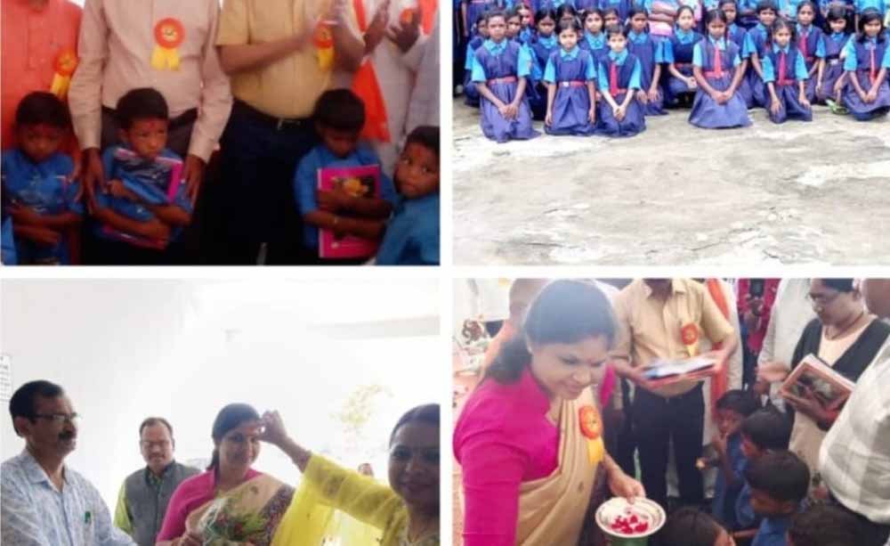 सर्वप्रथम अतिथियों द्वारा मां सरस्वती के छायाचित्र पर दीप प्रज्वलित कर व फूल चढ़ाकर सरस्वती वंदना के साथ कार्यक्रम प्रारंभ किया गया तत्पश्चात सभी अतिथियों के द्वारा नन्हे मुन्ने बच्चे का तिलक चंदन लगाकर स्वागत किया गया एवं निशुल्क ड्रेस एवं पाठ्य पुस्तक का वितरण कर मीठा खिलाकर स्वागत किया गया मुख्य अतिथि चंपा देवी पावले ने बच्चों को संबोधित करते हुए कहा कि बच्चे देश का भविष्य होते हैं जिस उम्मीद के साथ अभिभावक अपने बच्चों को विद्यालय भेजते हैं निश्चय ही इस उम्मीद की पूर्ति आप शिक्षक ही कर सकते हैं शिक्षक ही राष्ट्र के निर्माता होते हैं उन्होंने कार्यक्रम स्थल हाई स्कूल पिपरिया में कक्षा दसवीं परीक्षा का परिणाम सत प्रतिशत होने पर प्राचार्य डॉ विनोद पांडे को को बधाई दी जिसका सभी अतिथियों ने तालियो से स्वागत किया।