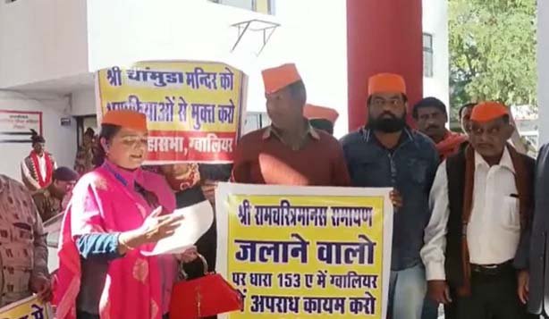 उत्तर प्रदेश में श्री रामचरितमानस की प्रतियां जलाने का मामला मध्यप्रदेश में तूल पकड़ता जा रहा है। इसी को लेकर ग्वालियर में हिंदू महासभा पिछले दो दिन से लगातार विरोध प्रदर्शन कर रही है। गुरुवार को ग्वालियर के क्राइम ब्रांच थाना पुलिस ने उत्तर प्रदेश के पूर्व मंत्री स्वामी प्रसाद मौर्य सहित आठ लोगों पर एफआईआर दर्ज की है। ये एफआईआर धर्मिक भावनाओं को भड़काने, जातियों के विरूद्ध वैमनस्य फैलाने जति और समुदाय के बीच घृणा पैदा करने के मामले में धारा 153A ओर 295 के तहत दर्ज की गयी है।