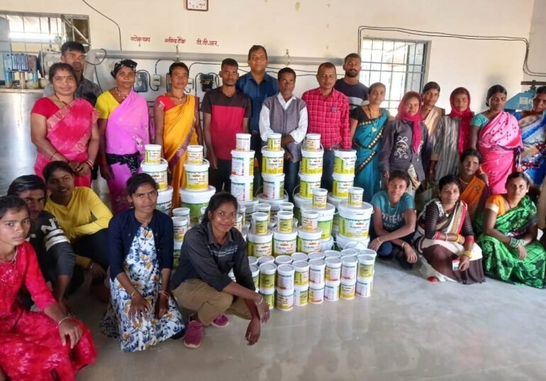 उत्तर बस्तर कांकेर 10 जून 2023 महात्मा गांधी रूरल इंडस्ट्रियल पार्क, रीपा अंतर्गत चारामा विकासखंड के गौठान सराधुनवागाँव में महिला …