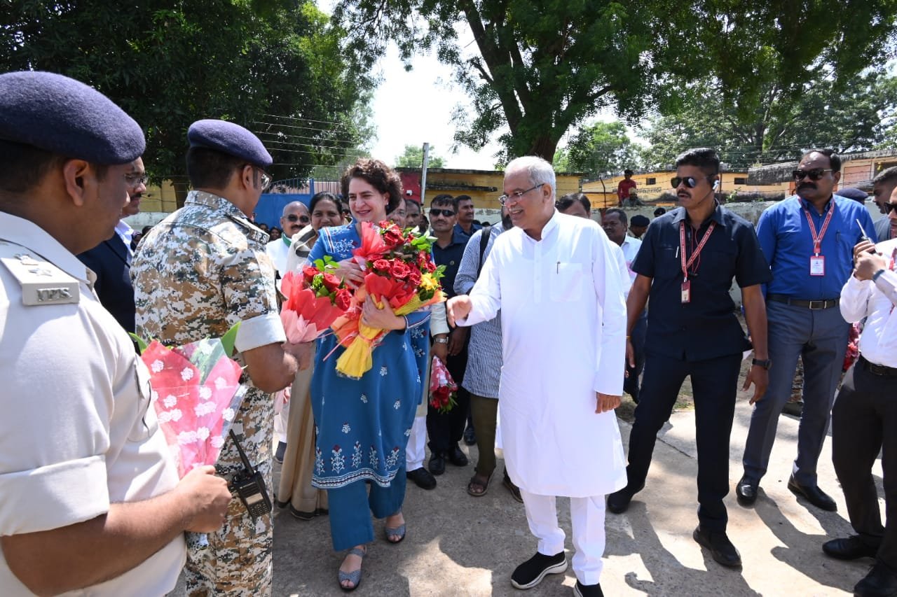 रायपुर : मुख्यमंत्री भूपेश बघेल और प्रियंका गांधी की हेलीपैड में किया गया आत्मीय स्वागत