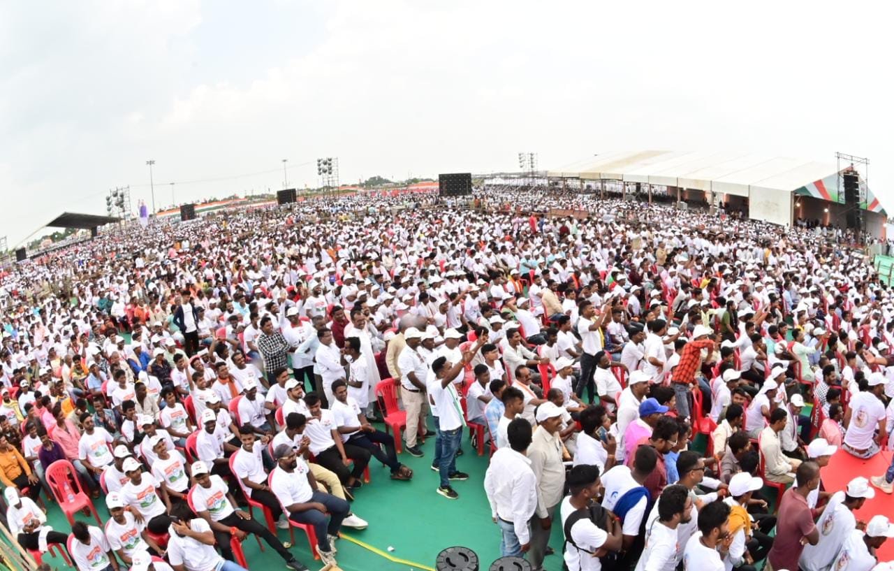 रायपुर : राजीव युवा मितान सम्मेलन में जुटे उत्साह से भरे युवाओं का समूह