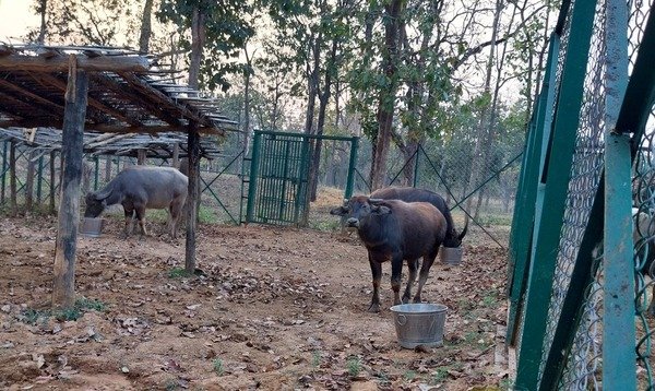 वनभैंसों की दो पीढ़ियां बाड़े में कैद