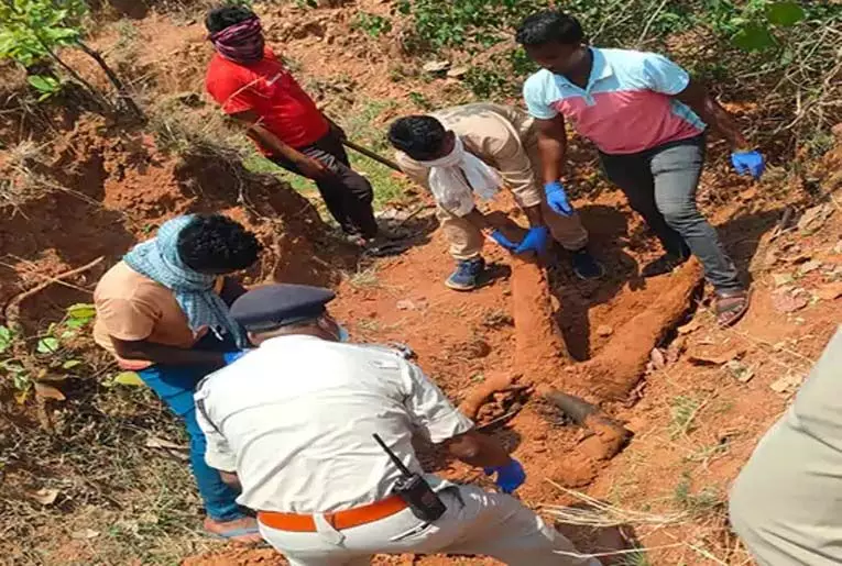 सरगुजा। छत्तीसगढ़ के सरगुजा में कब्र खोदकर एक शव को बाहर निकाला गया है। मामला हत्या से जुड़ा है। बताया जा रहा है कि, 6 मई को एक युवती की शादी होने वाली थी लेकिन उससे पहले युवती ने अपने मंगेतर को मिलने बुलाया और प्रेमी के साथ मिलकर उसकी हत्या करवा दी। सबूत मिटाने के लिए दोनों ने मिलकर लाश को दफना दिया था। लाश दफनाने के बाद प्रेमी-प्रेमिका अपने-अपने घर चले गए थे। जांच के दौरान पुलिस को जब सबूत मिले तो डर के चलते वे फांसी लगाकर आत्महत्या करने प्लानिंग भी करने लगे। हालांकि इससे पहले ही पुलिस ने प्रेमी-प्रेमिका को गिरफ्तार कर लिया। मामला बतौली थाना क्षेत्र का है।