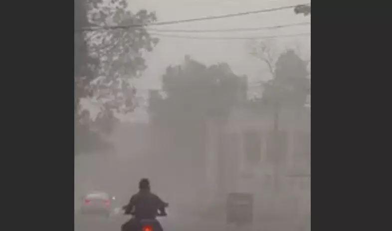 कोरबा। कोरबा में मतदान के दौरान तेज आंधी और बारिश शुरू हो गई है। इसके चलते मतदान केंद्र के बाहर लगे तंबू और बैनर-पोस्टर हवा में उड़ गए। वहीं दोनों दलों के कार्यकर्ता भी पंडाल छोड़कर भाग निकले हैं। इसके चलते मतदान रुक गया है। जिले में धूल-मिट्‌टी उड़ने से राहगीर परेशान हो रहे हैं। दिन में अंधेरा छा गया है, इसके चलते लोगों को गाड़ियों की लाइट जलाकर चलाना पड़ रहा है। कई जगह विद्युत खंभों पर शॉर्ट सर्किट हुआ है।
