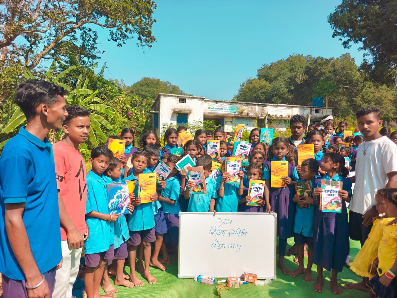 अब गांव के ही युवा स्वयंसेवकों ने भी बच्चों को निःशुल्क पढ़ाने की जिम्मेदारी अपने कंधों पर लेकर पहली से आठवीं तक के बच्चों को पढ़ा रहे हैं। बच्चों की पढ़ाई के लिए सामग्री बांटने का दिन यादगार रहा। सरपंच, पंच, शिक्षक, आंगनबाड़ी कार्यकर्ता, बुजुर्ग, महिलाएं पूरा गांव उमड़ पड़ा। आंगनबाड़ी से लेकर आठवीं तक के शिक्षकों की मेहनत की तारीफ हुई। बच्चों के हाथों में नई कॉपियां, पेन और बोर्ड थमाए गए। समिति ने वादा किया आगे भी सहयोग जारी रहेगा।