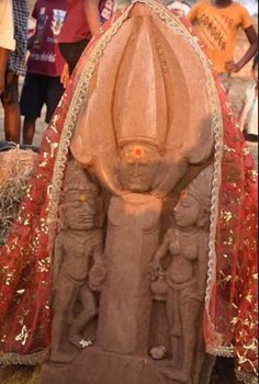 उल्लेखनीय है कि भूमिस्वामी द्वारा दो माह पूर्व खेत की जोताई ट्रेक्टर से करवाने पर यह शिला में बनी मूर्ति ट्रेक्टर के हल में फंसकर बाहर निकल गया, जिसे मेड़ के एक किनारे में किया गया था। 21 मई मंगलवार को स्थानीय ग्रामीणों ने इस शिला को पलटकर देखा तो मूर्ति नजर आया और यह खबर सारंगढ़ अंचल सहित देश प्रदेश में फैल गया।