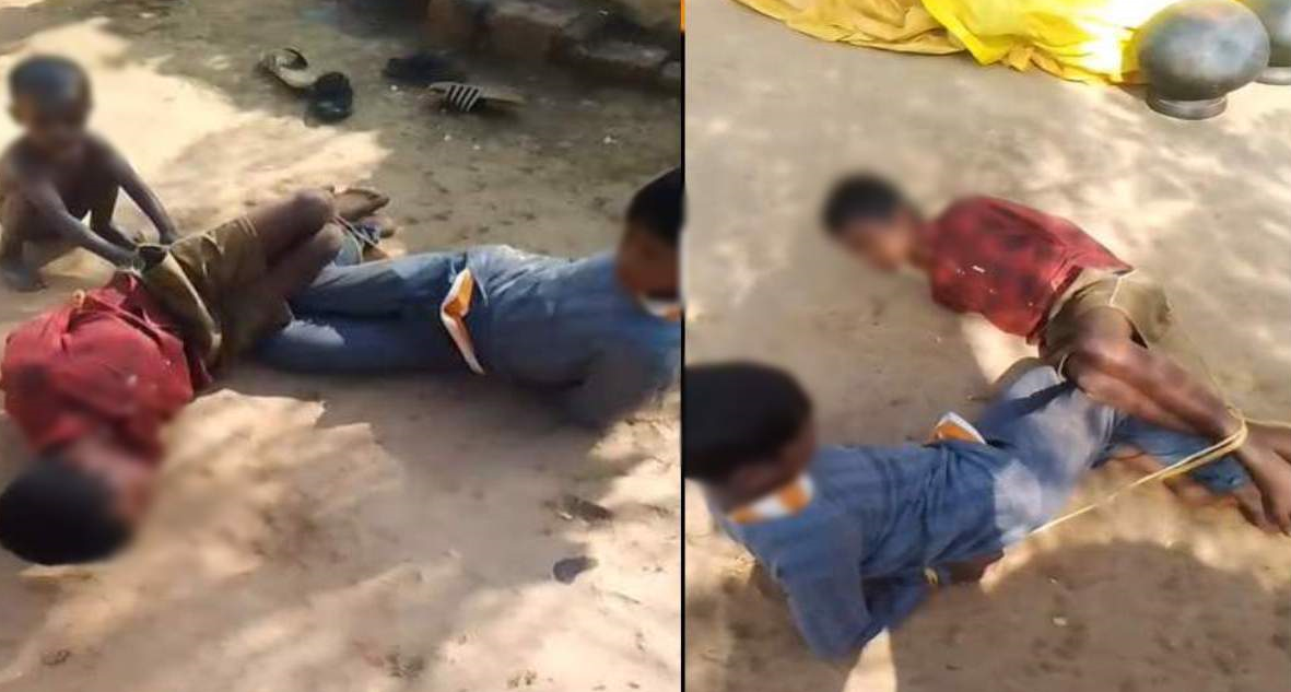 बलरामपुर। छत्तीसगढ़ के बलरामपुर जिले से मानवता को शर्मसार करने वाला मामला सामने आया है। खेत से मटर तोड़ने के आरोप में गांव के छोटे बच्चों को हाथ-पैर बांधकर बेरहमी से पीटा गया। इस दौरान सजा देने का वीडियो भी बनाया गया, जो सोशल मीडिया में वायरल हो रहा। पूरा मामला राजपुर थाना क्षेत्र के ग्राम लडुवा का है।