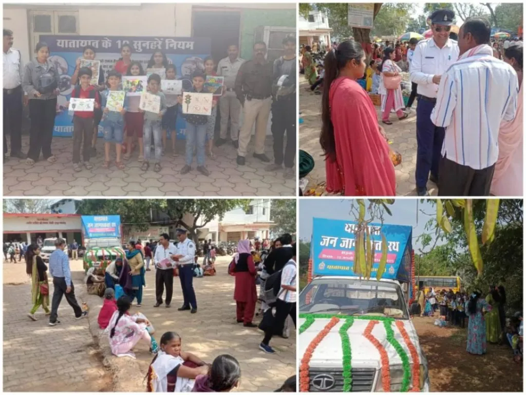 शराब सेवन कर वाहन न चलाये, नो पार्किंग में वाहन खड़ा न करें, प्रेशर हार्न का प्रयोग न करें, यातायात सिग्नलों का पालन करें, वाहन चलाते समय हेलमेट सीटबेल्ट का प्रयोग करे, चौक-चौराहों में हमेशा जेब्रा कासिंग से ही सड़क पार करते हुए पेंटिग्स के माध्यम से संदेश दिये है। यातायात रथ पर्यटन स्थल गंगरेल में पहुंचकर आये हुए पर्यटकों को यातायात रथ में लगे यातायात नियमों