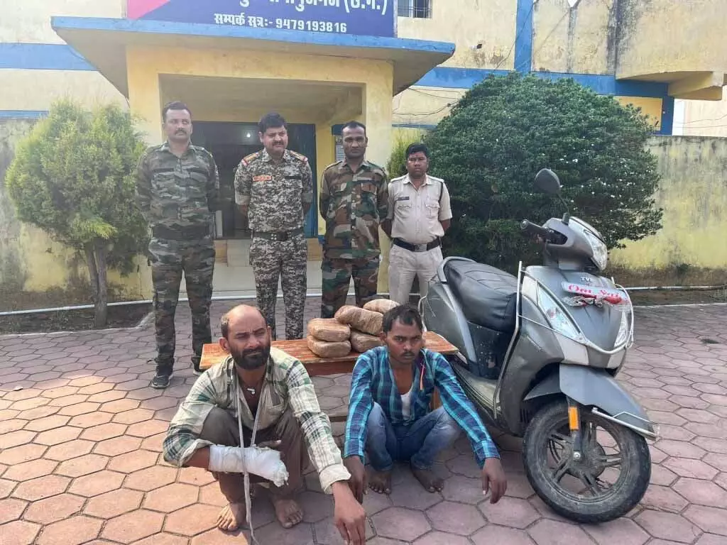 बलरामपुर गांजा तस्कर नए-नए शातिर तरीके से गांजा सप्लाई करते हैं. लेकिन पुलिस कार्रवाई कर उनके मंसूबों को कामयाब नहीं होने देती है. एक ऐसा ही गांजा तस्करी का मामला बलरामपुर के बसंतपुर थाना क्षेत्र से आया है. यहां टीवीएस जुपिटर सवार दो युवक ओडिशा से उत्तरप्रदेश गांजा लेकर जा रहे थे. इसमें से एक आरोपी का हाथ टूटा हुआ था और उसी के आड़ में गांजा सप्लाई किया जा रहा था. ताकि किसी को भी उन पर शक भी न हो. फिर भी तस्कर पुलिस की नजरों से बच नहीं सके. पुलिस ने दोनों आरोपियों को 6 किलो गांजा के साथ गिरफ्तार किया गया है. बसंतपुर पुलिस को मुखबिर से सूचना मिली थी दो व्यक्ति ओडिशा से गांजा लेकर अंबिकापुर के रास्ते उत्तरप्रदेश की ओर जा रहे है. जिसपर पुलीस ने तत्परता दिखाते हुए दोनों आरोपियों को धनवार चेकपोस्ट पर पकड़ा और उनसे पास से छः किलो गांजा जब्त किया है. वहीं एक tvs जुपिटर को भी जब्त किया है. दोनों आरोपियों के खिलाफ एनडीपीएस एक्ट के तहत कार्रवाई की जा रही है.