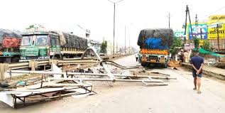 प्रत्यक्षदर्शियों के अनुसार सडक़ पार कर रहे एक साइकिल सवार को बचाने के चक्कर में ट्रक चालक ने अचानक मोड़ काटा, जिससे ट्रक अनियंत्रित होकर डिवाइडर से जा टकराया। टक्कर इतनी जबरदस्त थी कि डिवाइडर बुरी तरह टूट गया। हाइवे पर लगे पोल भी टूटे। वहीं सायकल सवार वहां से भाग निकला। हादसे में कोई हताहत नहीं हुआ। ट्रक चालक भी सुरक्षित है। सूचना मिलते ही पुलिस मौके पर पहुंच गई और स्थिति को संभाला। ज्ञात हो कि नगर में स्थान-स्थान पर वाहन गति सूचना बोर्ड लगे होने के बावजूद वाहनों की रफ्तार पर अंकुश नहीं लग पा रहा है, जिससे चलते शहर में ज्यादातर एक्सीडेंट की घटना की जानकारी मिलती रहती है।