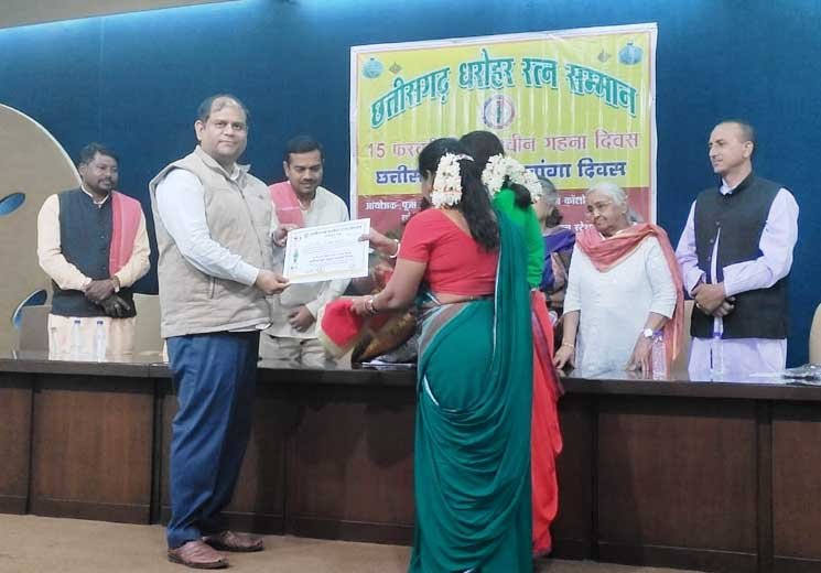रायपुर रूपाली महतारी गुड़ी बहुद्देशीय संस्था भिलाई ने रायपुर के वृंदावन हॉल में गुरुवार को छत्तीसगढ़ धरोहर रत्न सम्मान समारोह का आयोजन किया। इसमें राज्य के अलग-अलग शहरों की उन हस्तियों को सम्मानित किया गया जो समाज में अपना योगदान दे रही हैं। समारोह में चिकित्सा, शिक्षा, सामाज कल्याण व पत्रकारिता आदि क्षेत्रों में विशेष योगदान के लिए विभुतियों का सम्मान किया गया है। चिकित्सा के क्षेत्र भिलाई के संजय तिवारी व अरुण मिश्रा सहित कुछ अन्य विभूतियों को सम्मान मिला। वहीं पत्रकारिता में उत्कृष्ठ योगदान के लिए रमेश गुप्ता को सम्मानित किया गया।
