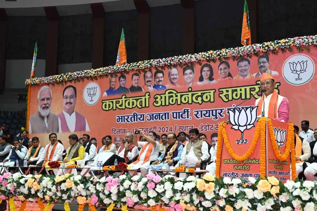 मुख्यमंत्री विष्णु देव साय बुधवार को इंडोर स्टेडियम में आयोजित कार्यकर्ता अभिनंदन समारोह में शामिल हुए। मुख्यमंत्री साय ने समारोह को सम्बोधित करते हुए कहा कि यह समारोह हमारे देवतुल्य कार्यकर्ता बंधुओं का है। भाजपा कार्यकर्ताओं की पार्टी है, हमारे सभी कार्यकर्ताओं ने तन मन धन से परिश्रम की पराकाष्ठा करते हुए ऐतिहासिक बहुमत से 54 सीट दिलाई है। यह सब आप सभी की बदौलत हुआ है। इससे पहले ही हमारी तीन बार सरकार रही है लेकिन इतना वोट प्रतिशत कभी नहीं बढ़ा।