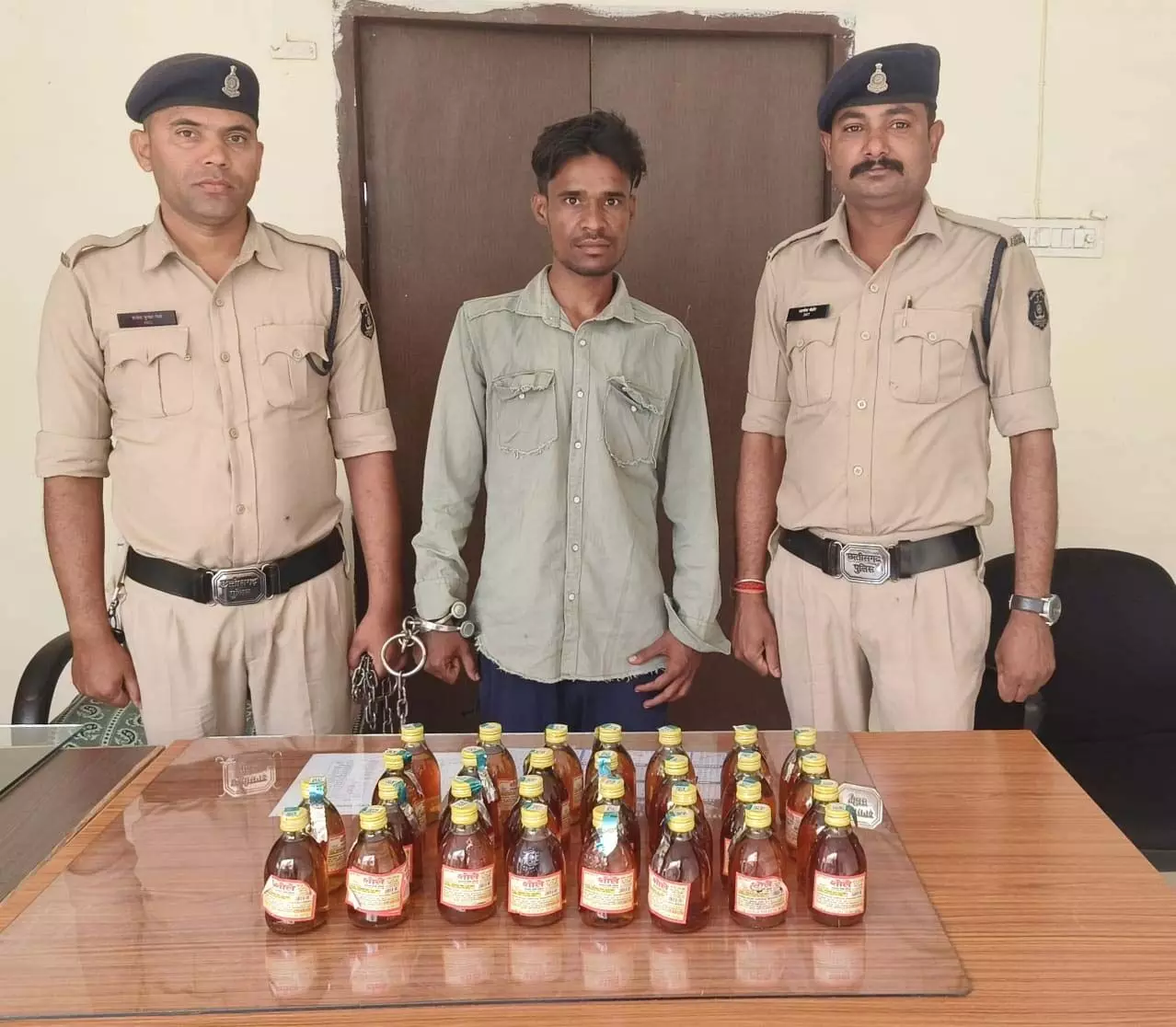 रायपुर। टाटीबंध चौक में शराब बेचते एक युवक पकड़ा गया हैं। आमानाका थाना को सूचना प्राप्त हुई कि थाना क्षेत्रांतर्गत पाण्डेय ढाबा के पास टाटीबंध चौक मे एक लडका जो लाल रंग का थैला पकडा है अपने पास अवैध रूप से बिक्री करने हेतु शराब रखा हुआ है कि सुचना पर वरिष्ठ अधिकारियों के निर्देशन में थाना प्रभारी आमानाका को सूचना की तस्दीक कर कार्यवाही करने निर्देशन पर मुखबीर की सुचना मे बताये स्थान पर जाकर रेड कार्यवाही किया गया। आरोपी सुरेश मिश्रा उर्फ चंदु पिता राम नरेश मिश्रा उम्र 27 साल निवासी रायपुरा गौरा चौक के पास थाना डी डी नगर रायपुर छ0ग0 के पास रखे थैला की तलाशी लेने पर थैला में 32 पौवा देशी मशाला शराब रखा होना पाया गया। जिस पर आरोपी सुरेश मिश्रा उर्फ चंदु को गिरफ्तार कर उसके कब्जे से 32 पौवा देशी मदिरा शराब 5लीटर 760 मिली लीटर किमती 3520/- रूपये जप्त कर आरोपी के विरूद्ध थाना आमानाका में अपराध क्रमांक 185/2024 धारा 34(2) आबकारी एक्ट का अपराध पंजीबद्ध कर कार्यवाही की गई। गिरफ्तार आरोपी- सुरेश मिश्रा उर्फ चंदु पिता राम नरेश मिश्रा उम्र 27 साल निवासी रायपुरा गौरा