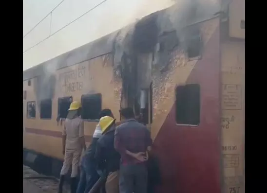 दुर्ग। बड़ी खबर सामने आ रही है। यहां ट्रेन के एक बोगी में भीषण आग लग गई। घटना के बाद अफरातफरी का माहौल हो गया। आग की लपटों को देखते हुए मौके पर पहुंची रेलवे और दमकल विभाग की टीम ने तुरंत बचाव कार्य शुरू किया।