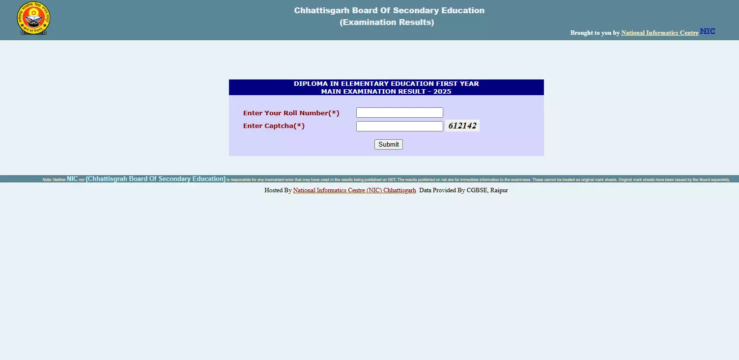 रायपुर। छत्तीसगढ़ माध्यमिक शिक्षा मण्डल, रायपुर द्वारा डीएलएड (द्विवर्षीय पाठ्यक्रम) प्रथम एवं द्वितीय वर्ष मुख्य/अवसर परीक्षा वर्ष 2025 का परिणाम आज घोषित कर दिया गया है। परीक्षार्थी अपना रोल नंबर दर्ज कर माध्यमिक शिक्षा मण्डल की अधिकृत वेबसाइट www.cgbse.nic.inपर परीक्षा परिणाम देख सकते हैं।