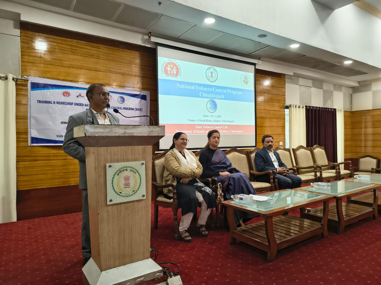 तंबाकू के सेवन से होने वाले गंभीर दुष्प्रभावों की रोकथाम तथा शैक्षणिक परिसरों को तंबाकू मुक्त बनाने के उद्देश्य से तंबाकू नियंत्रण एवं तंबाकू मुक्त शैक्षणिक संस्थान (TOFEI) दिशानिर्देशों पर आधारित राज्य स्तरीय प्रशिक्षण एवं संवेदीकरण कार्यशाला का आयोजन आज सर्किट हाउस, रायपुर में किया गया।