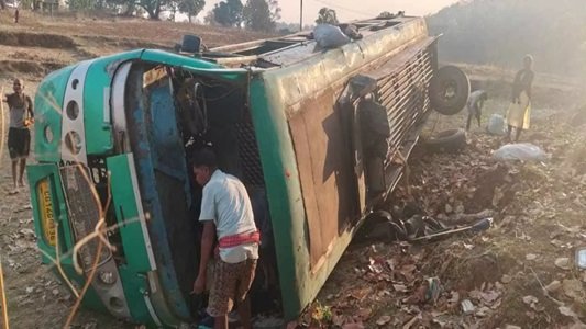 जशपुर । बगीचा के ग्राम महनई के समीप साेमवार की शाम लगभग 5 बजे चालक की लापरवाही से तेज रफ्तार बस पलट गई. इस हादसे में 6 से ज्यादा लाेग घायल हुए हैं. घटना की सूचना मिलते ही सुलेसा पुलिस मौके पर पहुंची और घायलों को अस्पताल पहुंचाया, जहां सभी का इलाज जारी है. बताया जा रहा है कि बस बगीचा से कुसमी जा रही थी, जिसमें लगभग 50 यात्री सवार थे. बस बगीचा थाना क्षेत्र के चाैकी सुलेसा के ग्राम महनई के पास पलट गई. बताया जा रहा है कि बस चालक फाेन पर बात कर रहा था और लापरवाही पूर्वक गाड़ी काे चला रहा था, जिससे बस अनियंत्रित हाेकर पलट गई. इस हादसे में 6 से ज्यादा लोग घायल हुए हैं. सभी घायलाें काे बगीचा सामुदायिक स्वास्थ्य केंद्र भेजा गया।