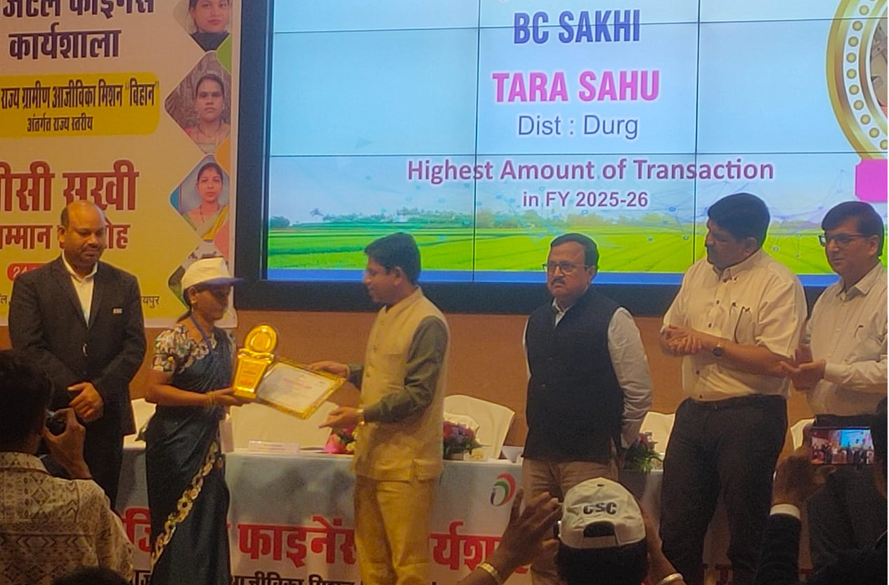 रायपुर, दुर्ग जिले की नंदिनीखुर्दनी ग्राम पंचायत निवासी तारा साहू को ग्रामीण स्तर पर बैंकिंग सेवाएँ उपलब्ध कराने के उत्कृष्ट कार्य के लिए ‘उत्कृष्ट बीसी सखी अवार्ड’ से सम्मानित किया गया है। यह सम्मान उन्हें रायपुर के न्यू सर्किट हाउस, सिविल लाइन में आयोजित राज्यस्तरीय कार्यशाला में मिशन संचालक, छत्तीसगढ़ एसआरएलएम द्वारा प्रदान किया गया। उनकी अनुपस्थिति में यह सम्मान एमीन दीदी ने ग्रहण किया।