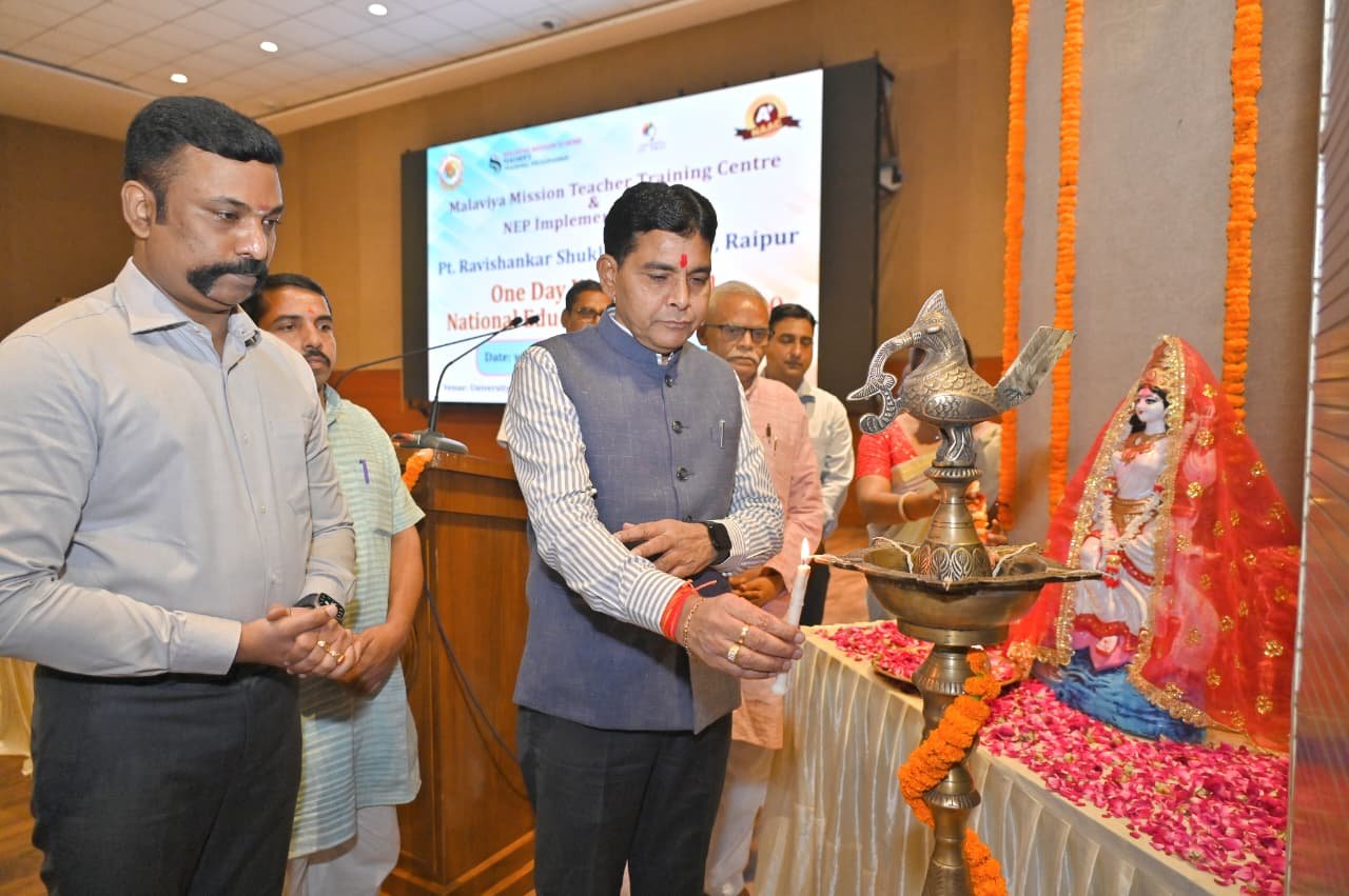 उच्च शिक्षा मंत्री टंक राम वर्मा ने नई शिक्षा नीति 2020 पर आजपं. रविशंकर शुक्ल विश्वविद्यालय, रायपुर में मालवीया मिशन टीचर ट्रेनिंग सेंटर एवं एनईपी इम्प्लीमेंटेशन सेल के संयुक्त तत्वावधान में राष्ट्रीय शिक्षा नीति-2020 पर एक दिवसीय कार्यशाला का आयोजन किया गया। विश्वविद्यालय सभागार में आयोजित इस कार्यशाला में उच्च शिक्षा मंत्री टंक राम वर्मा ने कहा कि राष्ट्रीय शिक्षा नीति-2020 देश की शिक्षा व्यवस्था को नई दिशा और दृष्टि देने वाली है। यह नीति न केवल विद्यार्थियों के सर्वांगीण विकास पर बल देती है बल्कि इसमें कौशल विकास, रोजगारपरक शिक्षा और अनुसंधान को भी प्राथमिकता दी गई है। उन्होंने कहा कि नई शिक्षा नीति से उच्च शिक्षा संस्थानों को अकादमिक उत्कृष्टता प्राप्त करने का अवसर मिलेगा और युवाओं का भविष्य और भी उज्ज्वल होगा। सरकार निरंतर प्रयासरत है कि प्रदेश का प्रत्येक युवा गुणवत्तापूर्ण शिक्षा प्राप्त करे और अपनी प्रतिभा के बल पर समाज और राष्ट्र के विकास में योगदान दे।