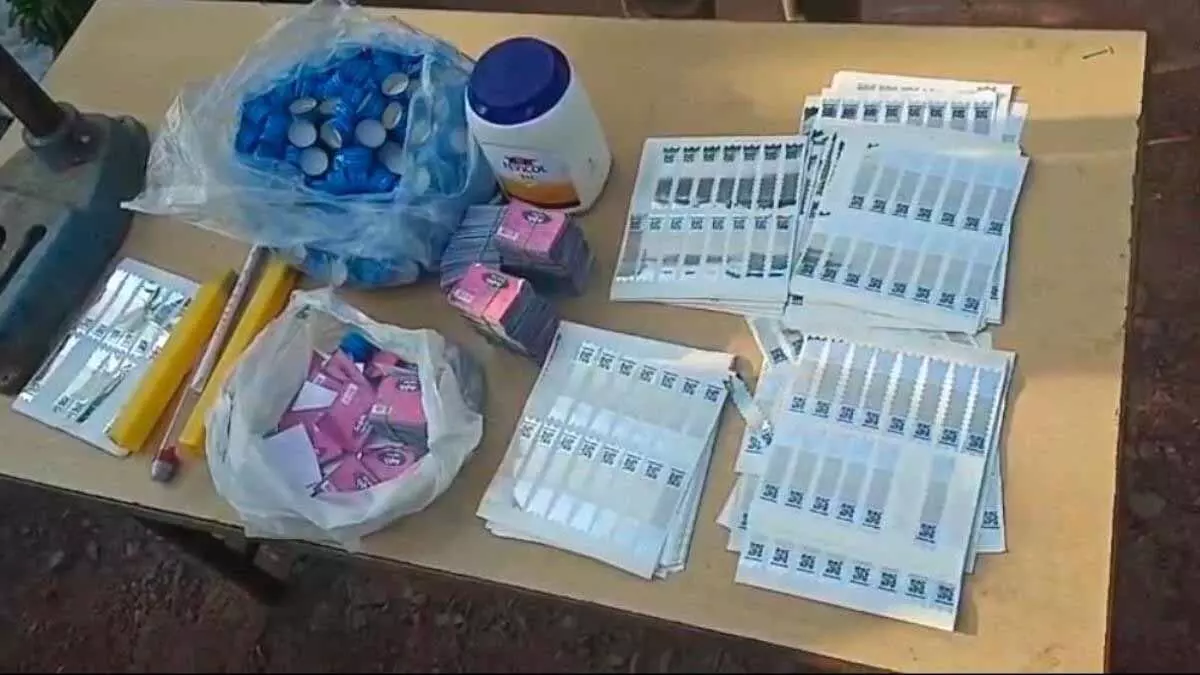 मौके पर दबिश के दौरान नारायण राजपूत पिता कमलेश (27 वर्ष) और उत्तर प्रदेश के हमीरपुर निवासी जाकिर खान पिता कादर खान (48 वर्ष) के साथ उत्तर प्रदेश निवासी सुरेंद्र कुमार सिंह पिता रतन (24 वर्ष), महेंद्र वर्मा पिता उमेश वर्मा (20 वर्ष) और मध्यप्रदेश निवासी राजेंद्र खंडकर पिता लल्लू खंडकर (19 वर्ष) को अवैध रूप से देसी प्लेन शराब बनाते हुए हिरासत में लिया. आरोपियों के कब्जे से प्लास्टिक के खाली डब्बे, देसी मदिरा का होलोग्राम, देसी मदिरा का स्टीकर, शीशी के ढक्कन, खाली शीशी, महिंद्रा गाड़ी यूपी 93 AB 6575, 24 पेटी देसी प्लेन शराब, एल्को मीटर यंत्र, ढक्कन को सील बंद करने वाली मशीन और खाली कार्टून जब्त किए गए.
