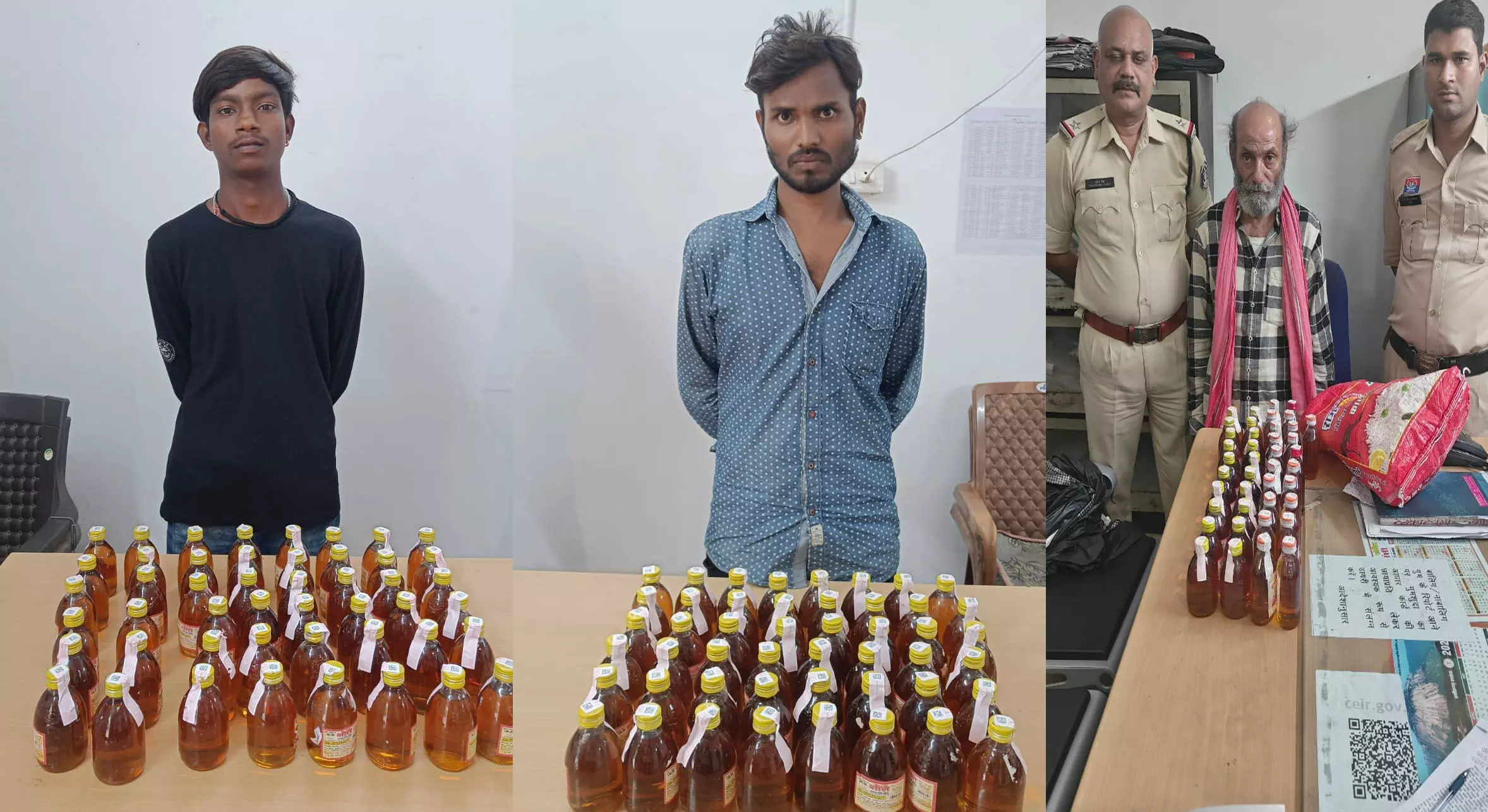 पूछताछ में व्यक्तियों ने अपना नाम जगन्नाथ कुम्हार ऊर्फ सागर एवं कैलाश कुम्हार निवासी विधानसभा रायपुर का होना बताया। टीम के सदस्यों द्वारा उनके पास रखें थैले की तलाशी लेने पर थैले पर शराब रखा होना पाया गया। शराब रखने एवं बिक्री करने के संबंध में दोनों से वैध दस्तावेज की मांग करने पर उनके द्वारा किसी प्रकार का कोई दस्तावेज प्रस्तुत न कर टीम के सदस्यों को लगातार गुमराह करने का प्रयास किया जा रहा था।
