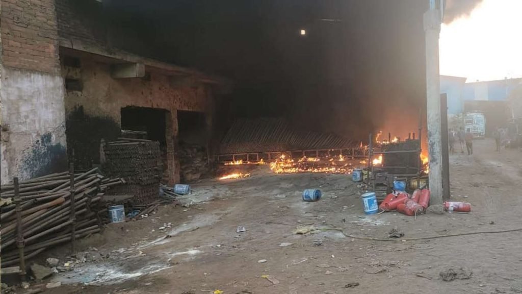 रायपुर। रायपुर के कबीर नगर थाना क्षेत्र अंतर्गत गांव तेंदुआ स्थित पाइप फैक्ट्री में आग लग गई है, जिसे बुझाने के लिए दमकल की 2 गाड़ियां मौके पर जुटी हुई हैं. फिलहाल, आग लगने के कारण का खुलासा नहीं हुआ है. आगजनी की घटना से फैक्ट्री में अफरा-तफरी की स्थिति है.