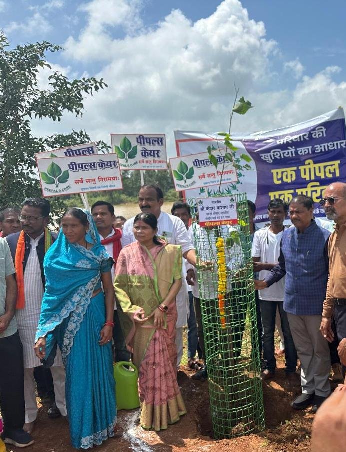 इस कार्यक्रम में छत्तीसगढ़ के वन एवं जलवायु परिवर्तन, परिवहन, सहकारिता, संसदीय कार्य मंत्री केदार कश्यप मुख्य अतिथि के रूप में उपस्थित रहे। उन्होंने कहा, पीपल को सिर्फ एक पेड़ नहीं, बल्कि एक परिवार का हिस्सा बनाने के लिए पीपल्स केयर सामाजिक संस्था ने ग्राम पंचायत महुपाल बरई में एक अनोखी पहल शुरू की है। आज मैं यहां एक मंत्री के रूप में नहीं, बल्कि इस धरती के एक बेटे के रूप में खड़ा हूँ। पीपल केयर का ‘‘एक पेड़ माँ के नाम’’ और ‘एक पीपल एक परिवार’ का यह अभियान, सिर्फ पेड़ लगाने का कार्यक्रम नहीं है, यह तो माँ और बच्चे के रिश्ते को फिर से परिभाषित करने जैसा है। मंत्री कश्यप ने आगे कहा कि पीपल का वृक्ष हमारी संस्कृति का प्राण है, यह हमारी वह माँ है जो बिना किसी स्वार्थ के हमें प्राणवायु का वरदान देती है। आज आपने सिर्फ पौधे नहीं लगाए हैं, बल्कि आपने अपनी अगली पीढ़ी के लिए जीवन के बीज बोए हैं।