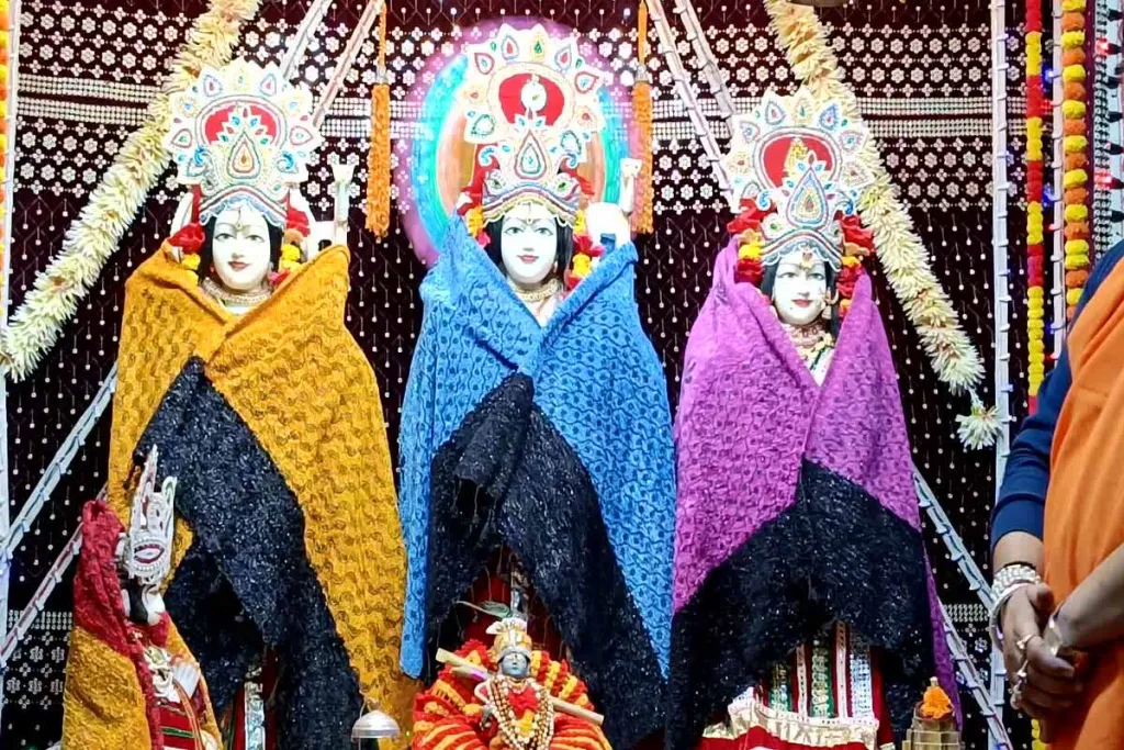 कवर्धा जिले का एक बड़ा क्षेत्र वनांचल व पहाड़ों से ढंका हुआ है। ऐसे में ठंड के दिनों में यह क्षेत्र आकर्षक लगता है। वहीं इन दिनों ठंड का असर आम लोगों के साथ ही साथ भगवान पर भी पड़ रहा है। अब तक ठंड के दिनों में ज्यादातर लोग साल, स्वेटर पहने नजर आते थे। वहीं पालतू जानवरों को भी ठंड से बचाने के लिए गर्म कपड़ों से ढंकते थे। लेकिन इस साल का ठंड भगवान को भी परेशान किए हुए है। यही कारण है कि शहर के कचहरी पारा स्थित श्री राम जानकी लक्षमण मंदिर में स्थापित भगवान श्री राम, लक्षमण व माता सीता को साल ओढ़ाया गया है साथ ही बाल गोपाल श्री कृष्ण जी को आकर्षक स्वेटर पहनाया गया है।
