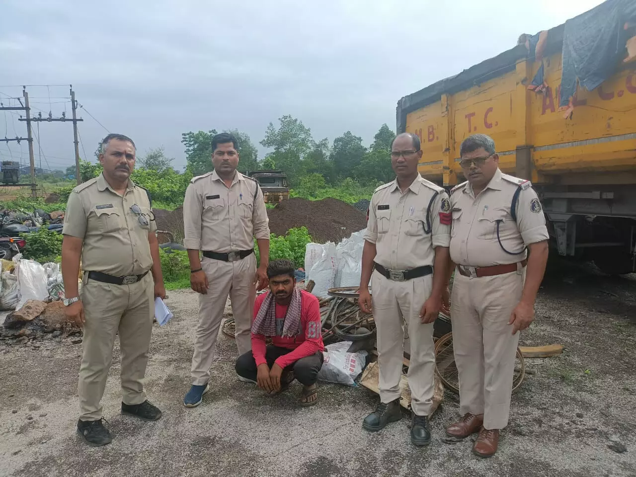 रायगढ़ । पुलिस अधीक्षक दिव्यांग कुमार पटेल के दिशा निर्देशन पर पूंजीपथरा पुलिस द्वारा थाना क्षेत्र में कबाड़ के अवैध कारोबार पर पूर्णत: प्रतिबंध लगाने इस कारोबार में संलिप्त व्यक्तियों पर ताबड़तोड़ कार्यवाही जा रही है । इसी क्रम में थाना प्रभारी पूंजीपथरा निरीक्षक राकेश मिश्रा के नेतृत्व में पूंजीपथरा पुलिस की टीम द्वारा मुखबीर सूचना पर ट्रक में अवैध रूप से परिवहन किये जा रहे कबाड़ जप्त किया गया है । कबाड़ भरे ट्रक क्रमांक सीजी 13 ए.वाई 3801 को सालसर चौक शनि मंदिर गेरवानी के पास पकड़ा गया जिसमें लोड 9 टन अवैध कबाड़ (कीमती 3 लाख रूपये) की विधिवत आरोपी वाहन चालक दिलीप कुमार पिता चिंता प्रजापति उम्र 24 साल निवासी मौदहा थाना मौदहा जिला हमीरपुर (उत्तर प्रदेश) के कब्ज से जप्ती किया गया । आरोपी के विरुद्ध थाना पूंजीपथरा में इस्तगासा धारा 35(क),(ड) BNSS/ 303(2) BNS के तहत कार्यवाही कर आरोपी को न्यायालय पेश किया गया है। वहीं पुलिस अधीक्षक दिव्यांग कुमार के दिशा-निर्देशन एवं अतिरिक्त पुलिस अधीक्षक आकाश मरकाम, डीएसपी अभिनव उपाध्याय के मार्गदर्शन पर टीआई राकेश मिश्रा के नेतृत्व में क्षेत्र के ढाबा और ट्रांसपोर्ट दुकान की आड़ में अवैध रूप से कबाड़ की क्रय करने वाले स्थानों पर पुलिस टीम द्वारा छापेमारी कर 05 व्यक्तियों को पकड़ा गया है । पुलिस टीम ने ऋषभ रोड लाइंस पूंजीपथरा के पास कबाड़ दुकान संचालित करने वाले आरोपित सौरभ सिंह के कब्जे से पुराने साइकिल पार्ट्स, लोहे के खम्भे करीब 1 टन कबाड़ की जप्ती की गई । बिन्नी ढाबा पूंजीपथरा के पास आरोपी राकेश महंत के कब्जे से 19 बोरी मैग्नीज और 40 क्विंटल लोहे का स्क्रैप जप्त किया गया । महुआ ढाबा गेरवानी के पास आरोपी घनश्याम नाग के कब्जे से 13 बंडल सरिया (करीब 1 टन) की जप्ती की गई है । इसी प्रकार लक्की कबाड़ी दुकान गेरवानी के संचालक राजेश सोनी के पास करीब 1 टन कबाड़ और फिरोज दुकान के पीछे पूंजीपथरा के पास आरोपी मो0 शकील के कब्जे से 27 बोरी स्पंज और करीब 1 टन स्क्रैप की जप्ती पुलिस टीम द्वारा किया गया । कार्रवाई में पुलिस ने आरोपियों से करीब 15 टन 300 किलो स्क्रैप कीमत ₹4,88,000 लाख का जप्त किया गया है । आरोपियों पर चोरी की संपत्ति रखने के आशंका पर थाना पूंजीपथरा में पृथक-पृथक इस्तगासा धारा 35(क),(ड) BNSS/ 303(2) BNS की कार्रवाई की गई तथा आरोपियों पर धारा 170 BNSS के तहत प्रतिबंधात्मक कार्यवाही किया गया है । छापेमार कार्यवाही में गिरफ्तारी आरोपी – (1) सौरभ सिंह पिता रंजीत सिंह उम्र 19 साल मलहार थाना देव, औरंगाबाद बिहार हाल मुकाम पूंजीपथरा (2) राकेश महंत पिता बसंत महंत 30 साल ग्राम भेण्ड्रा घरघोड़ा हाल बिन्नी ढाबा पूंजीपथरा (3) घनश्याम नाथ पिता बिहानू नाग उम्र 30 साल निवासी कर्रादेवरा बागबहार जशपुर हाल महुआ ढाब